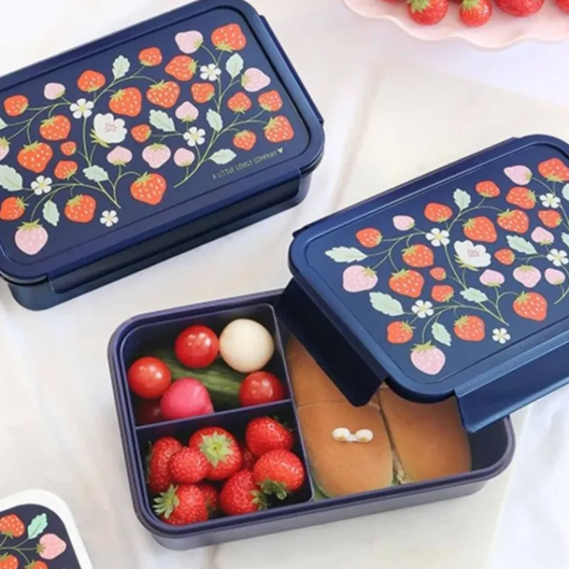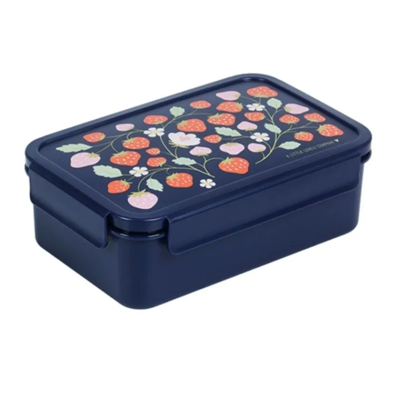 Madkasse Med Udtageligt Rum: Jordbær/StrawberriesSmart Bento Madkasse Med Kliklåg Og Mulighed For Rumopdeling. Med Plads Nok Til Mange Dele Såsom Rugbrødsmadder, Sandwich, Grønt Og Frugt.
