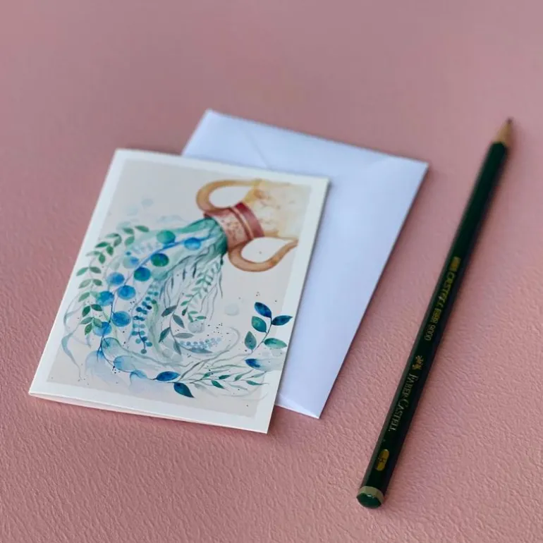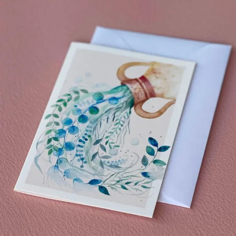 Designet Med Tryk Af Akvarel Af Håndmalede Motiver Fra Zodiacs By Voss-Serien.