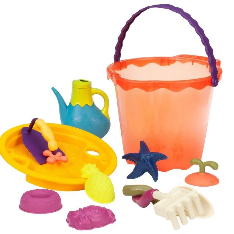 Stort Lækkert Spandsæt Til En Dejlig Dag Ved Standen Eller Hygge I Sandkassen ! Spandsættet Er Fyldt Med Sjov Leg. Forme Til At Bygge Et Flot Slot I Sand. En Kande Til Vand, Murerske Til Detaljerne, En Skovl Og Rive Og Si . Det Hele Ligger I En Lækker Stor Spand. Spanden Har 2 Håndtag, Som Gør Det Lettere For Barnet At Hælde Med Sandet Eller Vandet. Spanden Er Ekstra Stor, Og Måler 24 Cm I Højde. Inspireret Af Verden Omkring Dem Skaber B. Toys Farverige Kollektioner I Farver Og Mønstre, Der Er Helt Sine Egne. Lærerige, Udforskende, Finurlige Produkter, Hvor Barnet Kan Gå På Opdagelse Og Lege I Mange Timer.