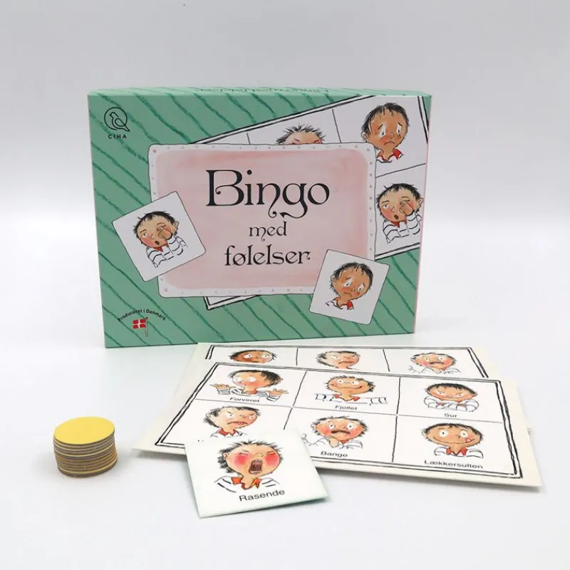 Bingo Med Følelser Er Et Klassisk Bingospil Med Et Twist. Spillet Styrker Barnets Evne Til At Aflæse Simple Følelser Og Ansigtsudtryk. Spillet Kan Spilles I 3 Forskellige Versioner, Som Der Vejledes Til I Spilleæsken.