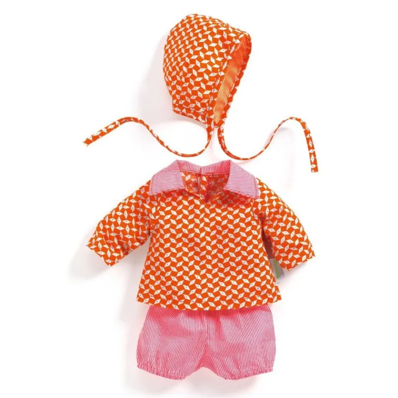 Djeco Har Indgået Et Samarbejde Med Det Franske Firma Petit Pan, Der Laver Smukke Farverige Tekstiler. Det Er Der Kommet En Flot Farverig Kollektion Ud Af. Det Søde Sæt Tøj Med De Flotte Mønstre Består Af Et Par Shorts, En Bluse Og En Hue. Tøjet Lukkes Med Velcro Og Kan Maskinvaskes På Skåneprogram 30°.