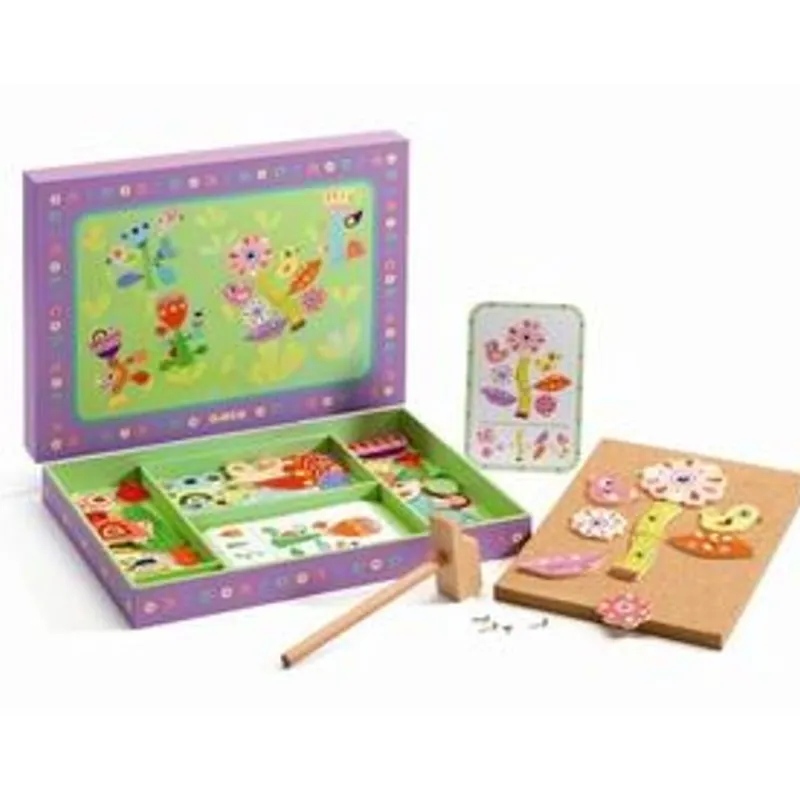 En Flot Udgave Af Den Klassiske Hammerleg, Hvor Man Skal Bygge Fine Blomster I Haven Af De Forskellige Dele På Korkpladen Med Den Medfølgende Hammer Og Stifter.