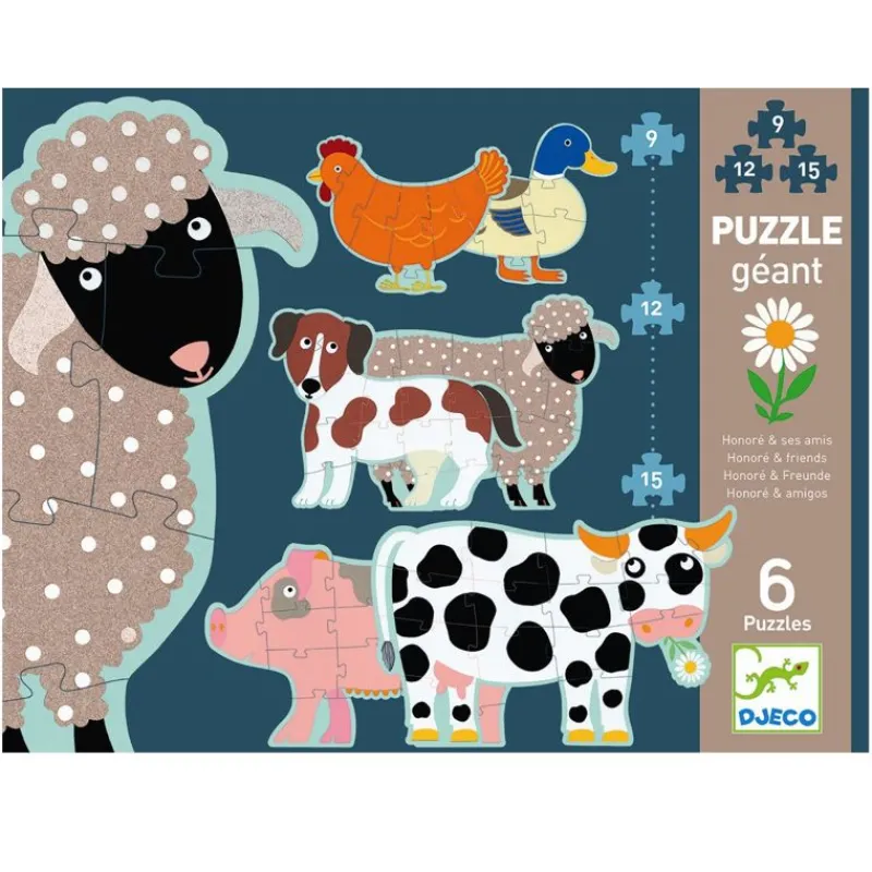 Gulvpuslespil, Med 6 Forskellige Puslespil Der Stiger I Antallet Af Brikker.