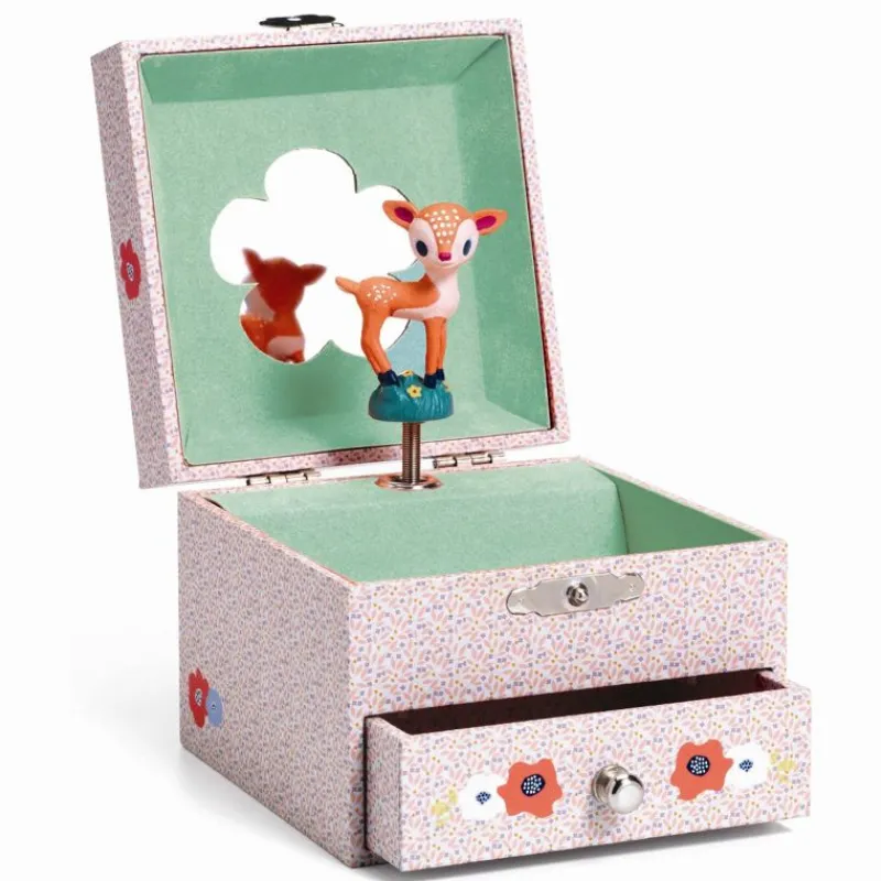 Det Fine Lille Smykkeskrin Fra Djeco Har Plads Til Dine Smykker, Når Du Åbner Det Op. Der Er Også En Lille Skuffe, Hvor Du Kan Gemme Lidt. Den Fine Bambi Snurrer Rundt Til Musikken, Når Du Åbner For Skrinet. Melodi: “”””””””The Magic Flute””””””””, Wolfgang Amadeus Mozart.