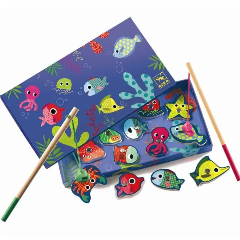 Fin Farvestrålende Udgave, At De Populære Fiskespil. De Farvestrålende Træfisk Leveres I En Smuk Kraftig Papæske Samt 2 Magnetfiskestænger I Træ.