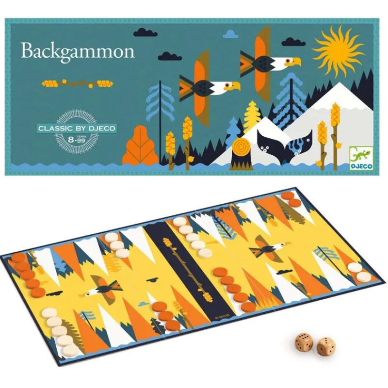 Et Helt Klassisk Spil Backgammon, Men I Djeco´S Flotte Design. Spillet Opbevares I En Smuk Dekoret Æske.