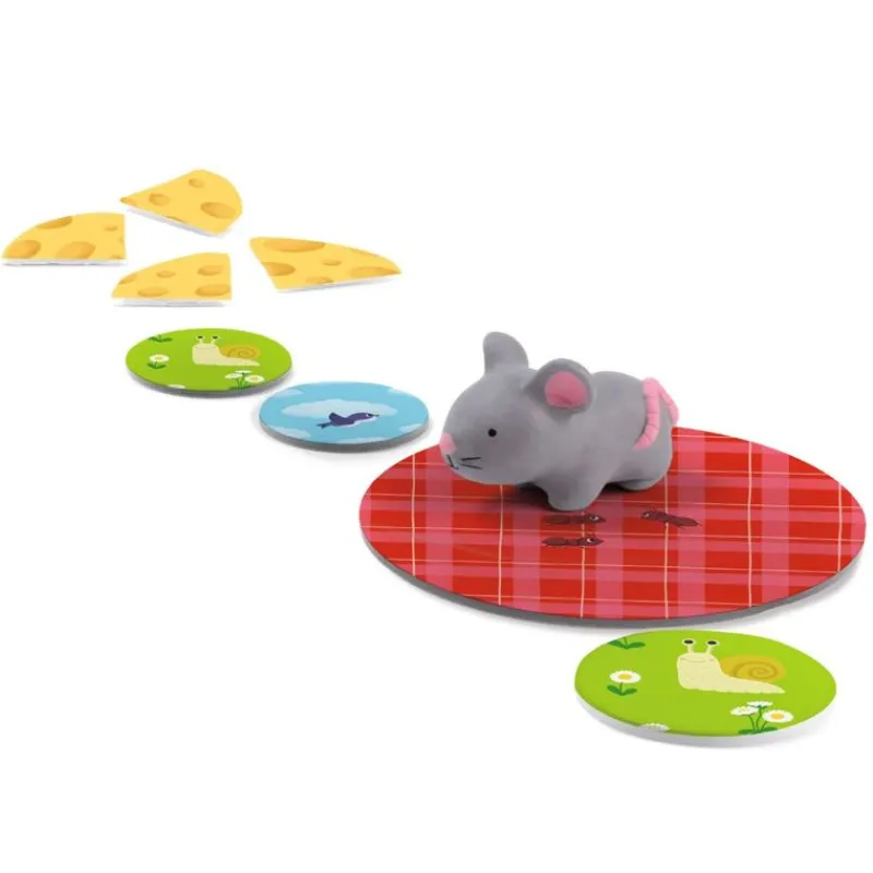Et Spil Med Tilfældigheder, Hvor Du Skal Være God Til At Huske. De Små Mus Løber Om Kap For At Få Fat I Ostestykkerne. For At Komme Frem På Vejen, Skal De Gætte, Hvilken Farve, Der Gemmer Sig Under Det Næste Felt.