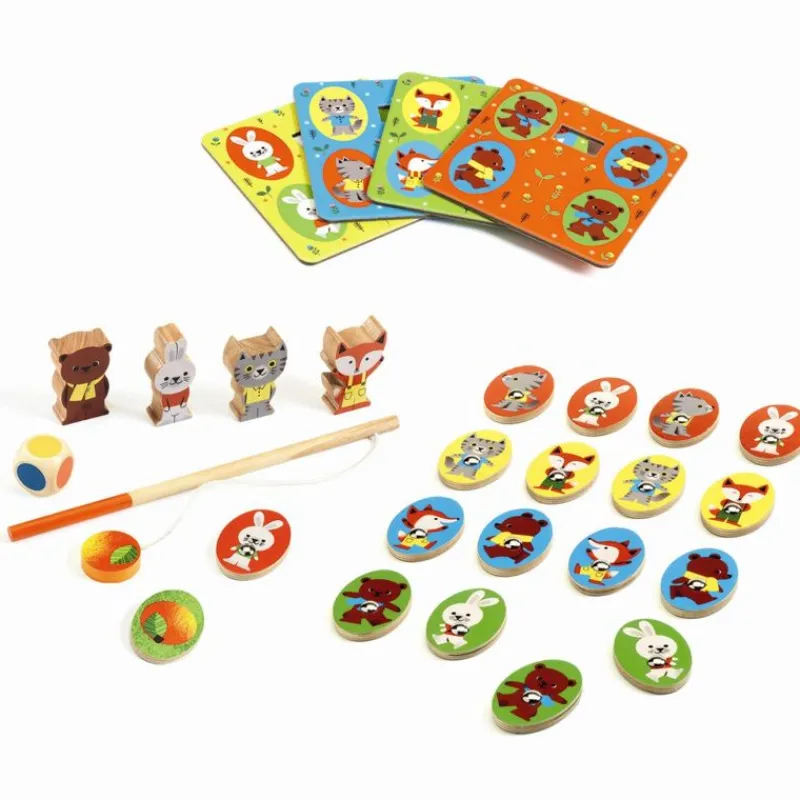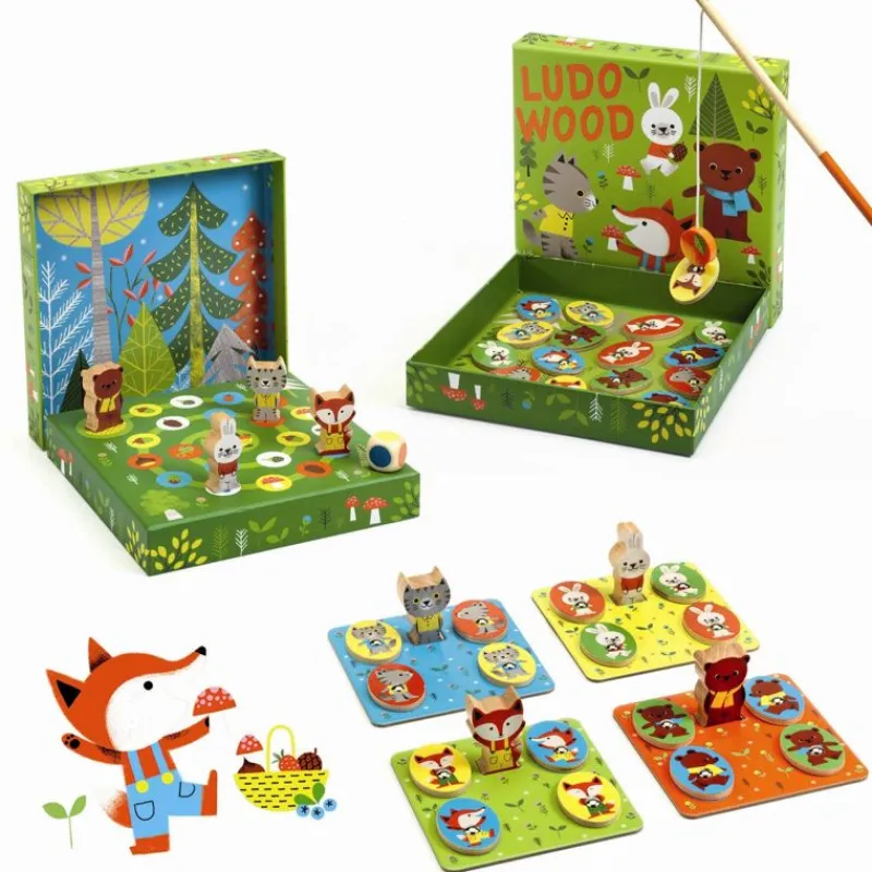 Djeco Har Lavet En Æske Med 4 Spil Til De Små. Alle Brikker Og Terning Er Lavet I Træ. Der Er Fiskespil, Huskespil, Billedlotteri Og Hvem Kommer Først Til Midten.