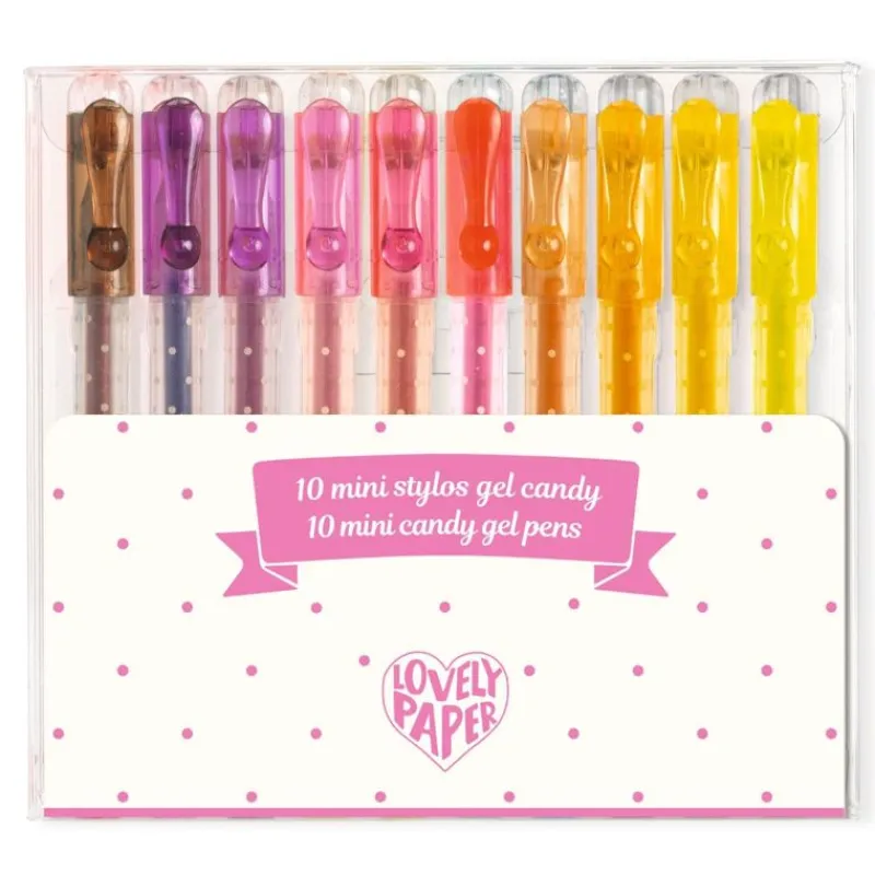 10 Skønne Gelpenne Fra Djeco I Flotte Farver. (Bronze, Guld, Lilla, Orange, Fuchsiarød, Lys Lilla, Rød, Fosforescerende
