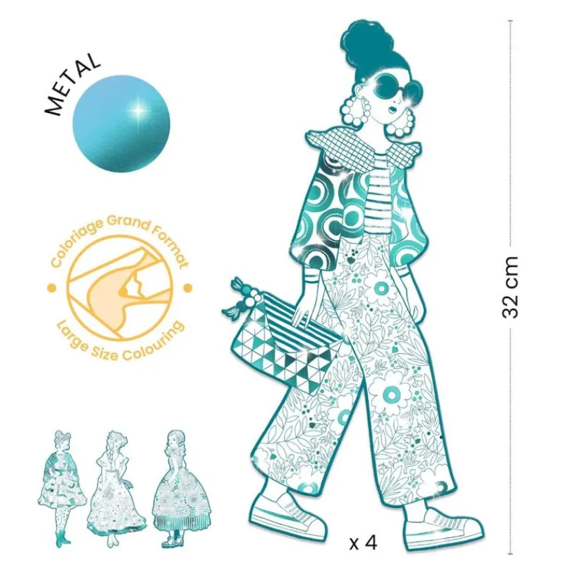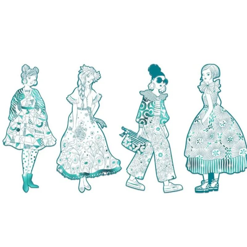 Den Fine Pakke Indeholder 4 Forskellige Piger I Mønstret Tøj Med Metalliske Streger/Områder, For Et Endnu Flottere Resultat. Når Du Har Farvelagt Dem Har Du Måske Lyst Til At Hænge Dem Op På Dit Værelse.