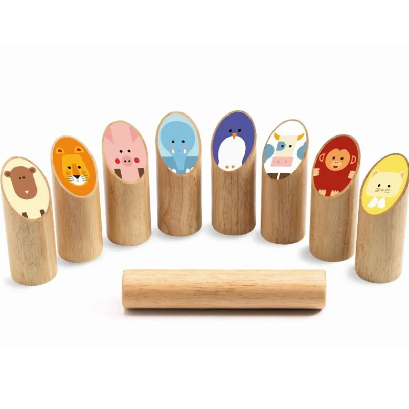 Et Virkelig Fint Spil I Træ Til De Gode Dage Ude I Løbet Af Sommeren. Et Klassisk Spil Fra Djeco, Hvor Det Gælder Om At Vælte Dyrene Ved At Kaste Med Pinden.