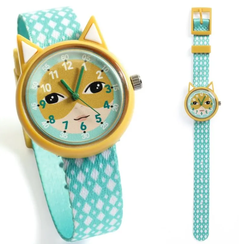 Fint Børneur Fra Djeco, Men Minutangivelser Der Gør Det Lettere At Lære Klokken. Det Fine Design Gør Det Attraktivt For Børn. Japansk Miyota 2035 Værk, Stødsikker, Sony Sr626Sw Batteri Includeret, Længde På Urrem 20 Cm, Bredde På Urrem 1,4 Cm, Diameter 3 Cm