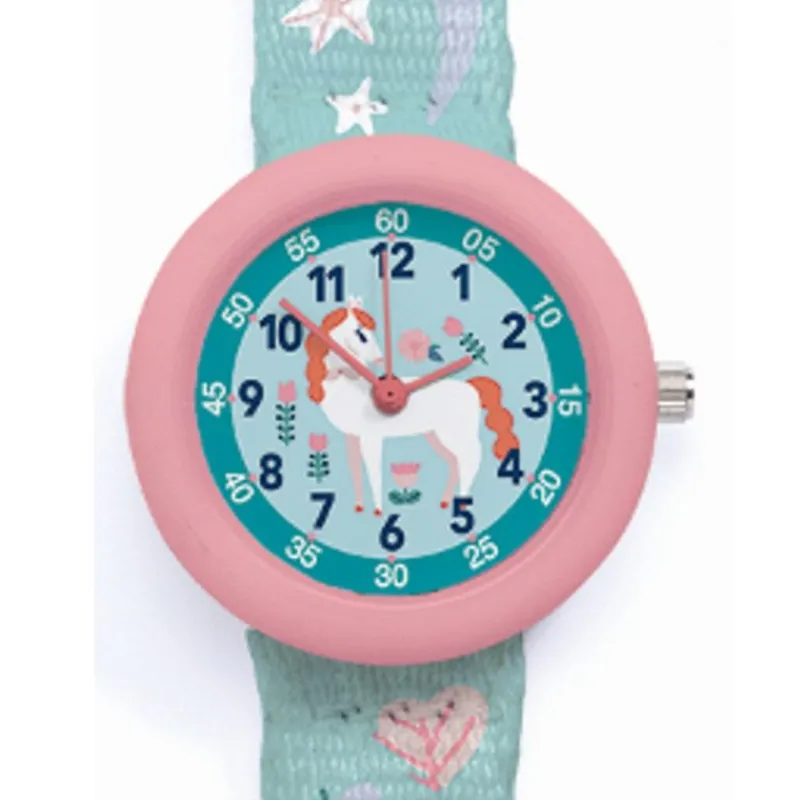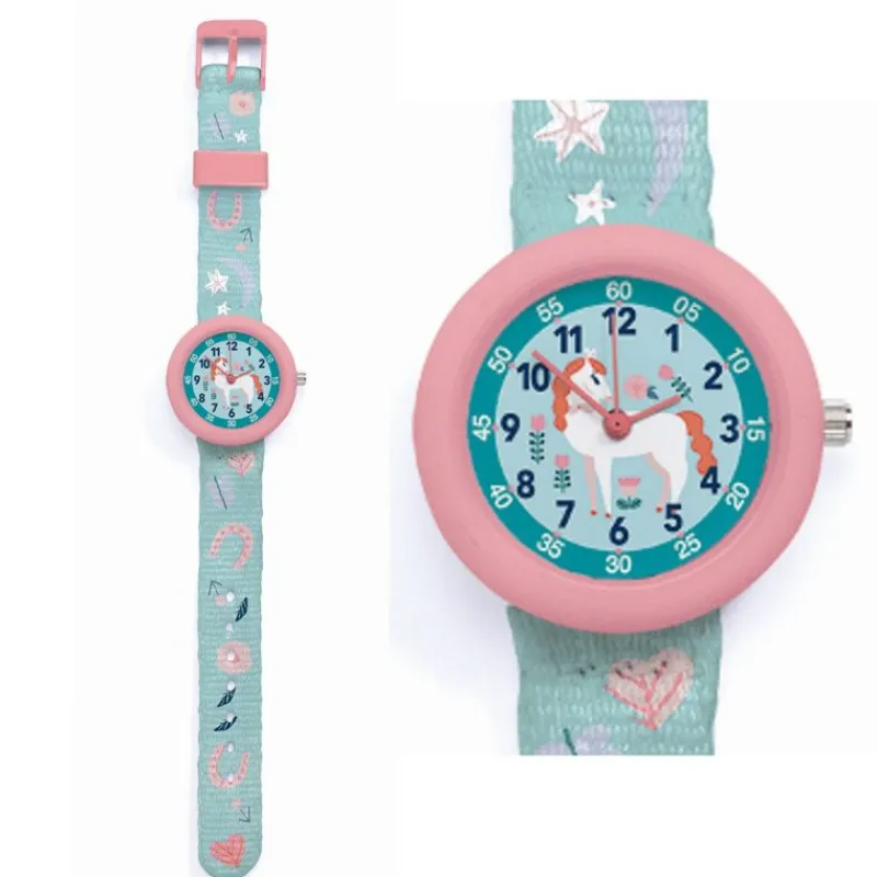 Fint Børneur Fra Djeco, Men Minutangivelser Der Gør Det Lettere At Lære Klokken. Det Fine Design Gør Det Attraktivt For Børn, Og Er Japansk Miyota 2035 Værk.