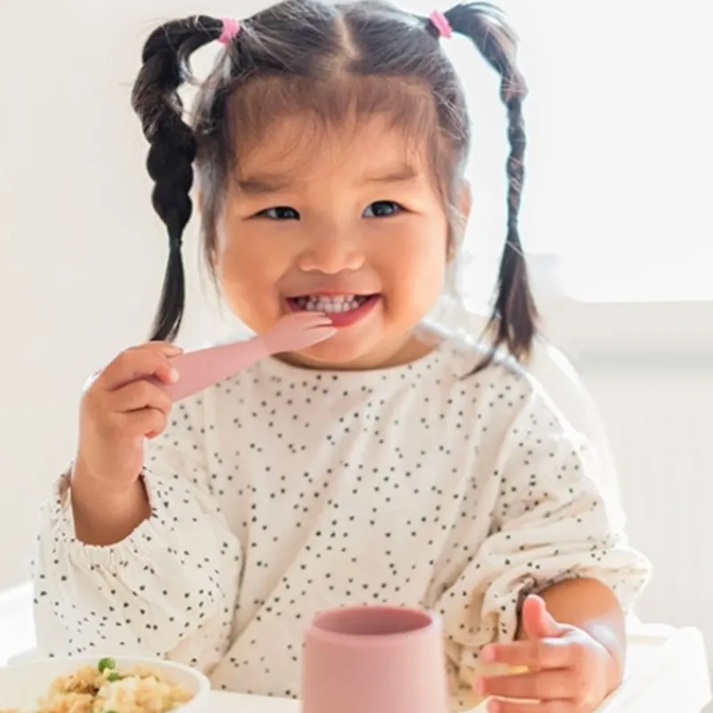 Ezpz Bestiksæt Med Ske Og Gaffel Som Støtter Barnet I At Lære At Spise Selv, Som Er Et Vigtig Udviklingstrin For Barnet.
