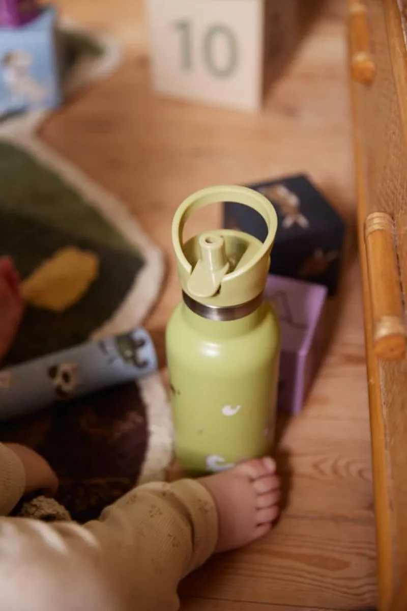Drikkeflasken Er Et Perfekt Match Til Vores Silikonemadkasse Med Samme Illustrationer Og Farver.