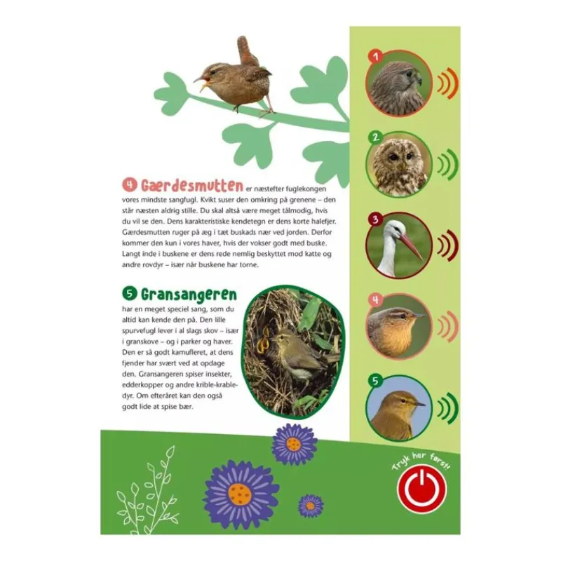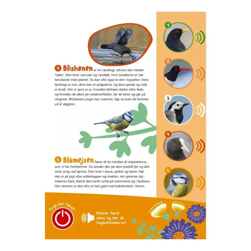 I Denne Flotte Bog Med Lyd Kan Du Lytte Til 35 Af De Mest Almindelige Fugle I De Danske Haver, Skove Og Byer, Og Det Kræver Blot En Tryk På En Knap! Bogen Byder På Masser Af Viden Og Underholdning Til Både Store Og Små, Der Har Lyst Til At Vide Mere Om Fugle I Vores Natur. Så Find Kikkerten Frem Og Gå På Opdagelse I Naturen!