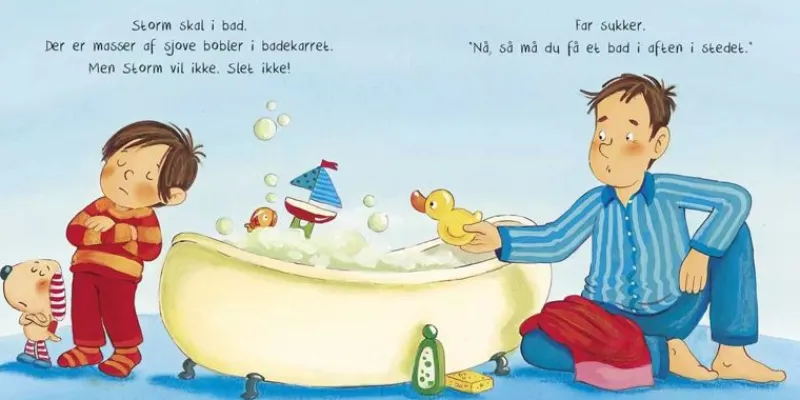 Storm Skal En Masse Ting – Men Han Vil Ikke! Far Prøver At Finde Løsninger, Som De Begge Er Tilfredse Med, Og Det Lykkes Heldigvis … Det Meste Af Tiden! En Fin Og Farverig Bog Om Trodsalder For De Yngste.
