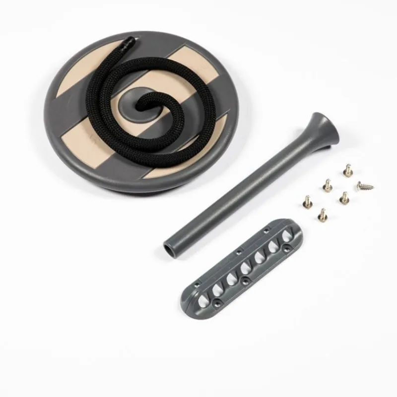 Rund Fodgynge I Hård Plast Og Blød Gummi. Gyngen Har En Diameter På 21 Cm Og Passer Børn Op Til 6 År. Gyngen Holdes Af Et Kraftigt Nylonreb I Sort, Som Har Et Sort, Formet Plastikrør I Bunden, Der Beskytter Mod Slid.