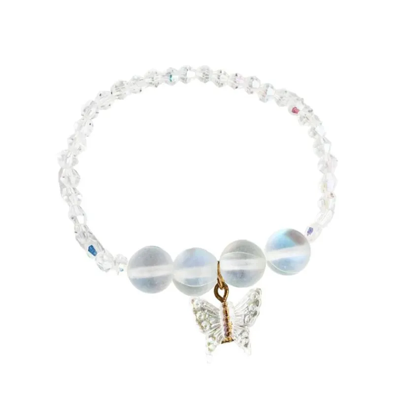 Dette Er En Fin Kombination Af Glasperler Og Mindre Perler Med Et Fin Glitrende Sommerfugle-Vedhæng. Hold Den Op Mod Lyset For At Få Den Ægte Regnbueeffekt.