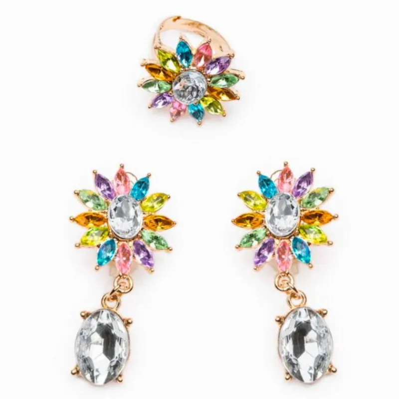 En Tilføjelse Til Vores Ekstravagante Smykkesæt: The Victoria! Dette Smykkesæt I 3 Dele Inkluderer Øreringe Med Klips Og En Matchende Ring. Den Er Lavet Med Levende Lyserøde, Blå, Grønne Og Lilla Juveler, Der Vil Få Din Lille Til At Føle Sig Som Kongelig! Ikke Alene Er Dette Smykkesæt Ekstravagant, Men Det Kommer Også I En Smuk Æske Med Magnetisk Lukning, Der Kan Bruges Til At Opbevare Alle Dine Børns Ekstravagante Juveler. Få Din Lille Til At Føle Sig Ekstra Speciel Med Disse Kongelige Juveler!