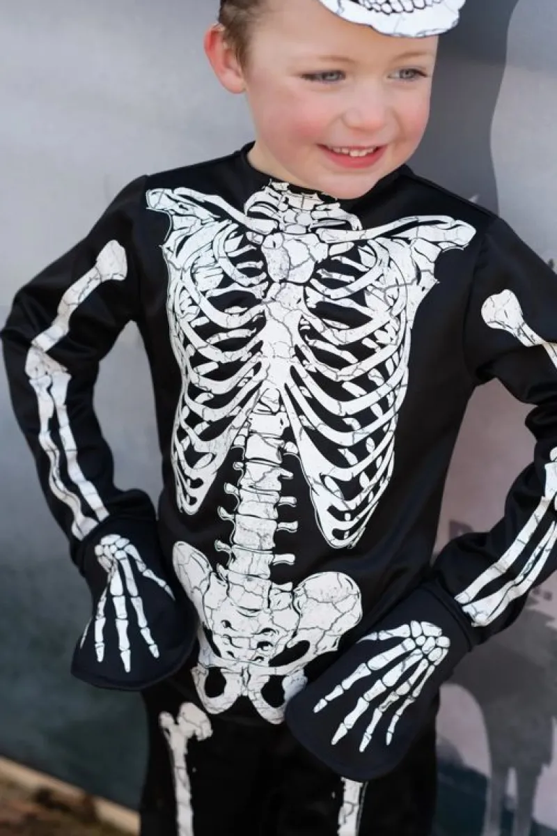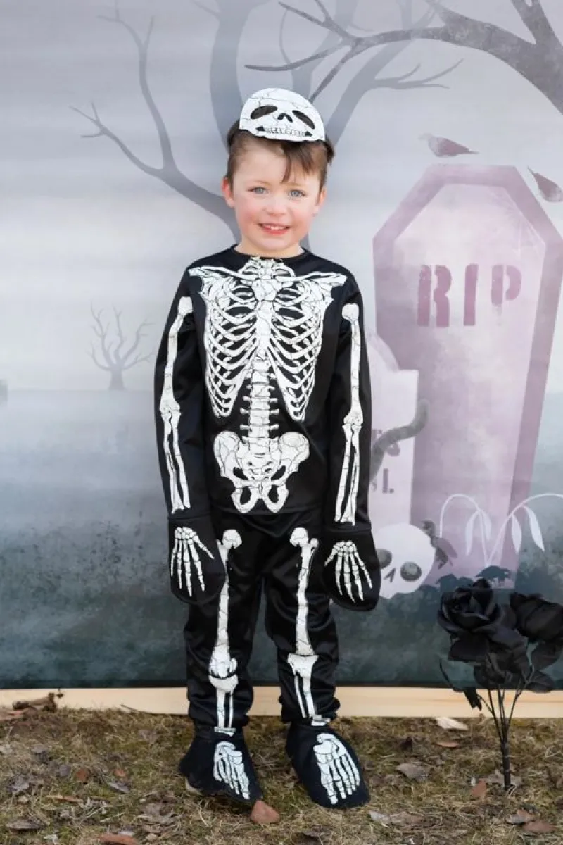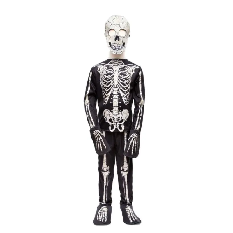 Dette Sæt Er Lavet Af Materialer Af Høj Kvalitet Og Er Ikke Kun Behageligt At Have På, Men Også Holdbart Nok Til At Modstå Slik-Eller-Ballade Hele Aftenen. Skeletdesignet Er Lavet Ved Hjælp Af Speciel Glow-In-The-Dark-Blæk, Der Oplades Af Lys Og Dermed Giver Dig Et Overjordisk Udseende I Omgivelser Med Svagt Lys. Blusen Har Lange Ærmer Og Rund Hals, Mens Bukserne Er Designet Med En Elastisk Linning For En Behagelig Pasform. Den Matchende Skeletmaske Fuldender Sættet Og Tilføjer Et Ekstra Lag Af Uhygge Til Dit Look. Gør Dig Klar Til At Lyse Natten Op I Dette Episke Glow In The Dark Skeleton Kostume!