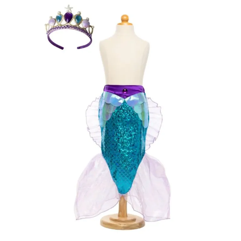 Den Smukke Havfrue-Nederdel Har Ekstra Stofrynkning Og En Bred Elastik På Bagsiden For Ekstra Komfort Og Størrelsesfleksibilitet. Med Sit Folieprint Og Skinnende Bløde Tylfinner Er Denne Nederdel En Ægte Perle, Og Ja, Den Kan Maskinvaskes! Tiaraen Er Behagelig Og Fleksibel Med En Smule Bøjning.