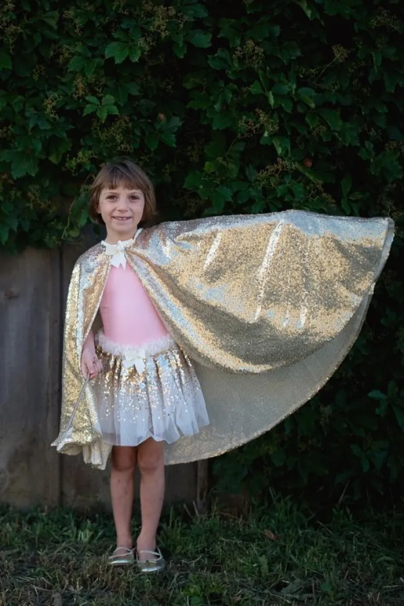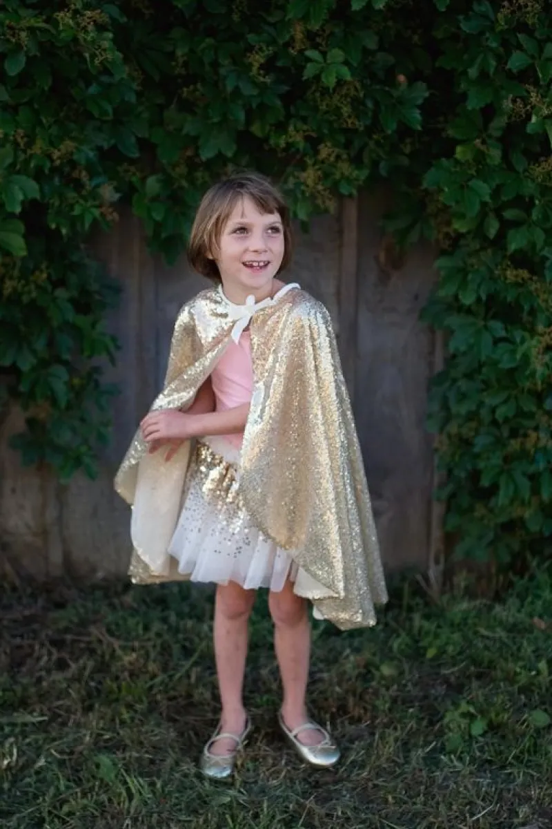 Pailletterne På Denne Kappe Vil Skinne Klart Med Elegante Guldpailletter. Kraven Er Blødt Foret Og Bindes Med En Fin Sløjfe.