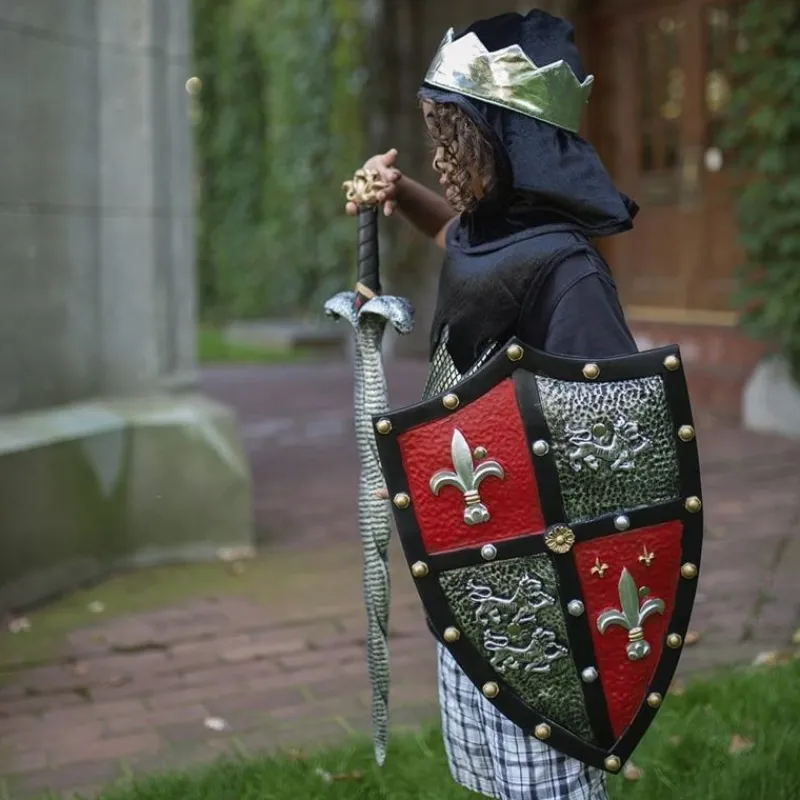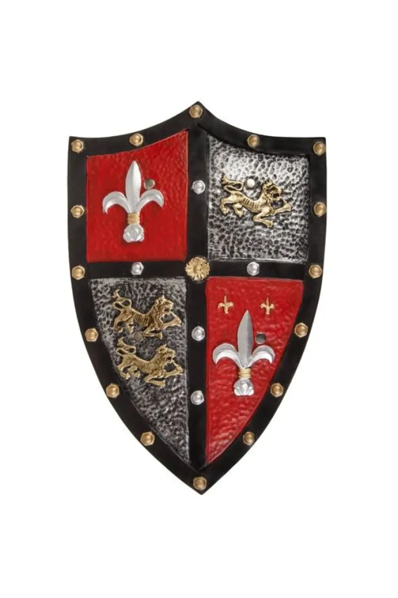 Hver Ridder Har Brug For Det Perfekte Skjold Til At Hjælpe Med At Afværge Mystiske Udyr. Dette Skjold Har Et Fedt Rødt Og Guldmønster Med Løveaccenter Og Fleur De Leaf-Mønstre, Perfekt Til At Parre Med Dit Yndlingssværd Og Rustning. Lavet Af Fleksibelt Skum Og Håndmalet.