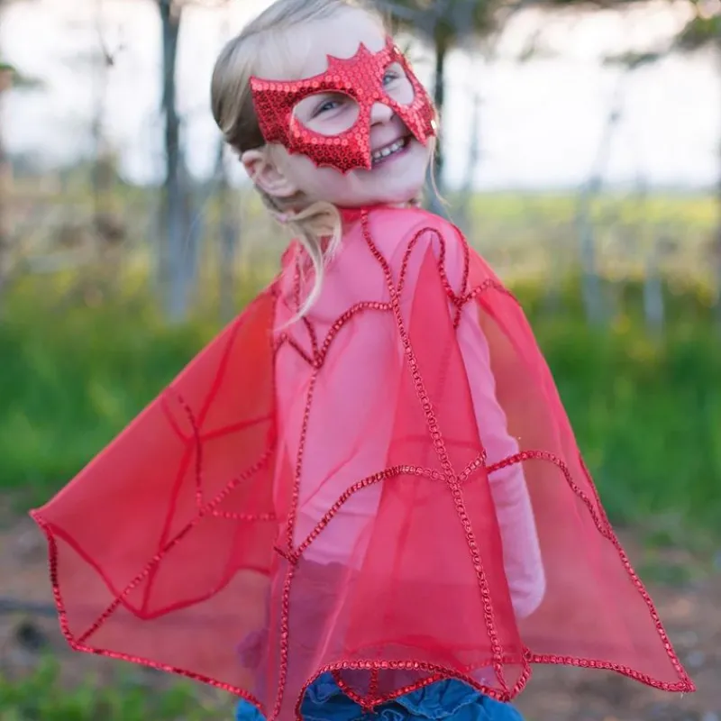 Organza Kappe Med Paillettersyninger Og En Glitrende Maske Fyldt Med Pailletter Er Perfekt Til Både Fastelavn, Halloween Eller Bare En Dag Med Udklædning. Den Er Nem At Tage Uden På En Jakke, Hvis Vejret Er Koldt Når Der Skal Rasles Eller Sige Slik Eller Ballade.