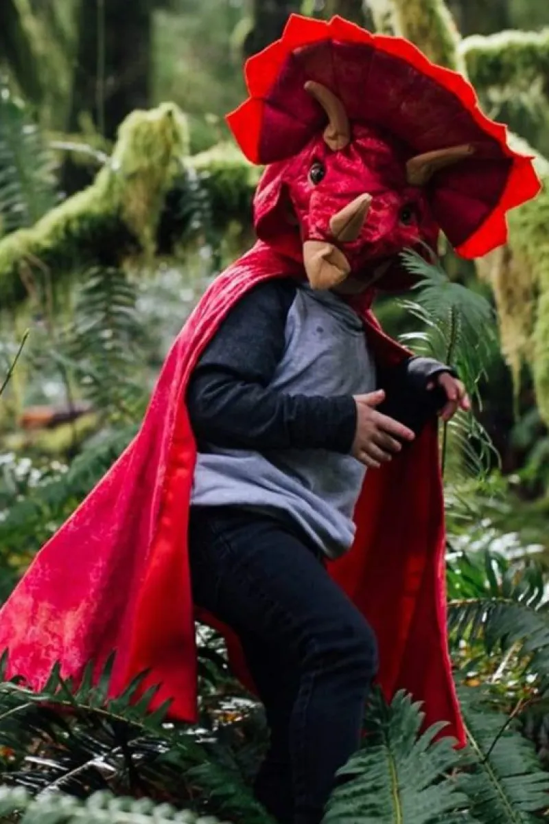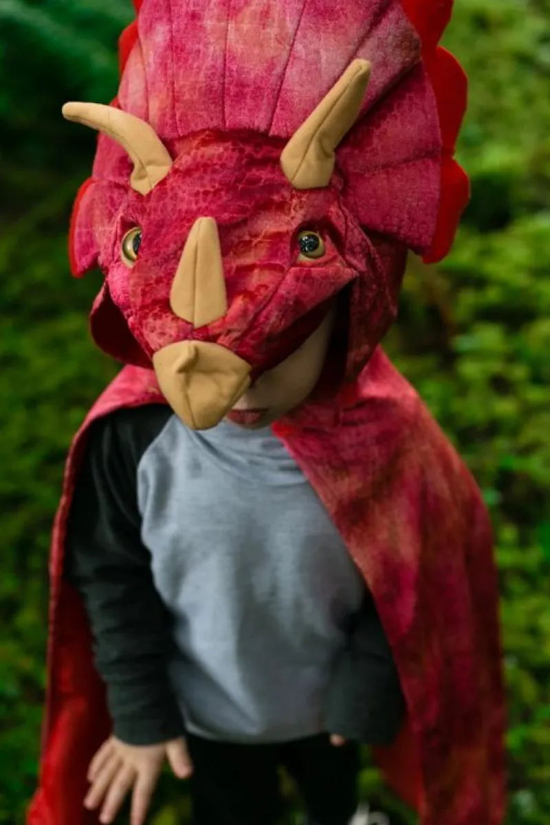 Denne Dino-Kappe Fra Great Pretenders Dino-Kollektion Er Lavet I Velour, Med Seje Realistiske Øjne Og 3D-Fyldte Detaljer. Horn Og Filtdetaljer Omkring Hovedet Gør Denne Triceratops Dino Til Noget At Brøle Om! En Foret Hætte Og Velcrolukning Gør Denne Kappe Holdbar Og En Udklædning Man Kan Bruge I Mange År!