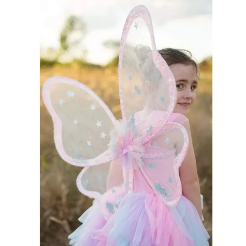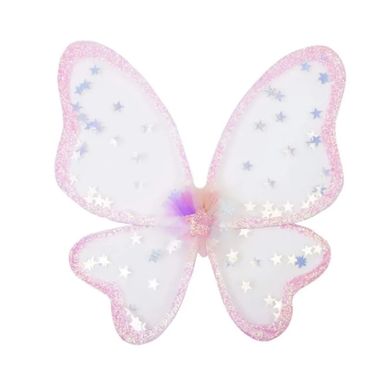Glitter I Massevis – Disse Vinger Er Forblændende. Indesluttet Mellem To Lag Tyl Er Stjerneformede Konfettistykker, Som Bevæger Når Den Lille Fe Flyver Afsted.L! Disse Vinger Er Ca. 43X52 Cm Brede Og Kommer I En Tricotpose.