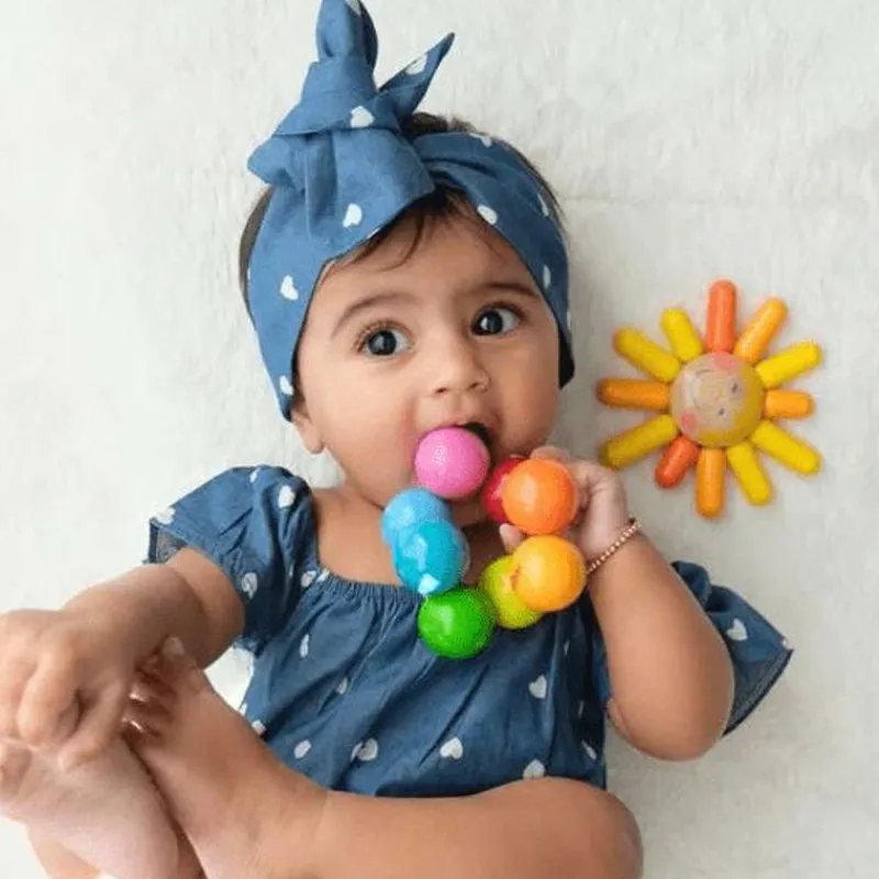 Dette Håndlavede Magica Farverige Trælegetøj Med Greb, Er God For Barnets Tænder Og Er Let At Få Fat I For De Små Børns Hænder. Til Første Greb Og Raslen.