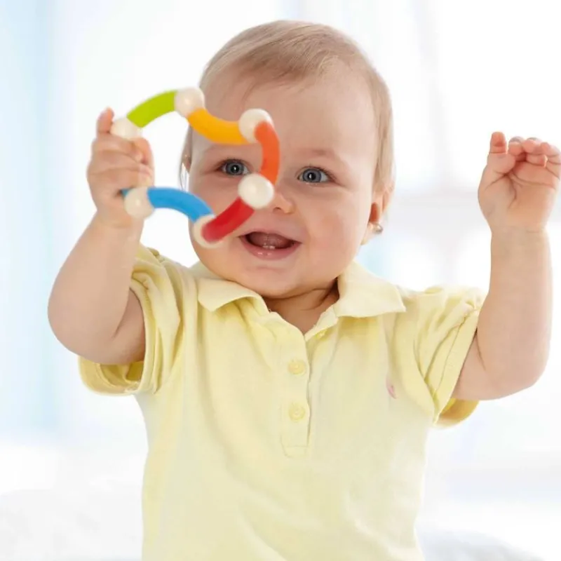 Hold Dit Barn Underholdt Og Engageret Med Color Snake Clutching Toy Fra Haba! De Farvestrålende Stykker Er Trådet På Et Elastikbånd Og Giver Uendelige Muligheder For Grovmotorisk Træning. De Naturligt Farvede Perler Er Lavet Af Bøgetræ, Og De Farverige Kurver Er Lavet Af Fasal (Et Alternativ Til Plastik Lavet Af Organiske Materialer, Der Fungerer Usædvanligt Godt Til Buede Stykker).