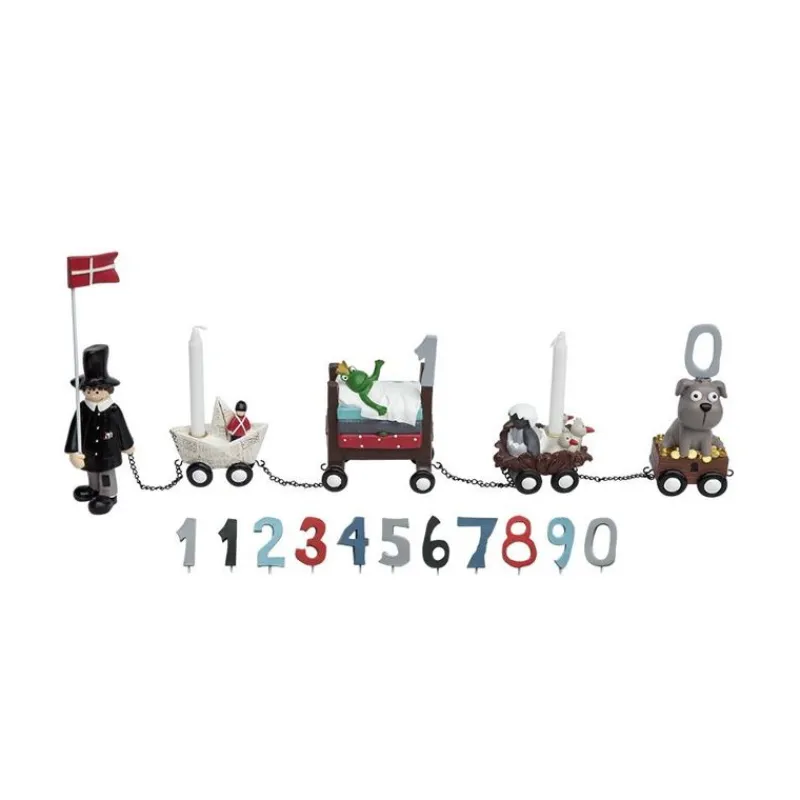 H. C. Andersens Eventyr Håndmalet Fødseldagstog M. 11 Tal. Plads Til To Talnumre I Toget Inklusiv Flag.