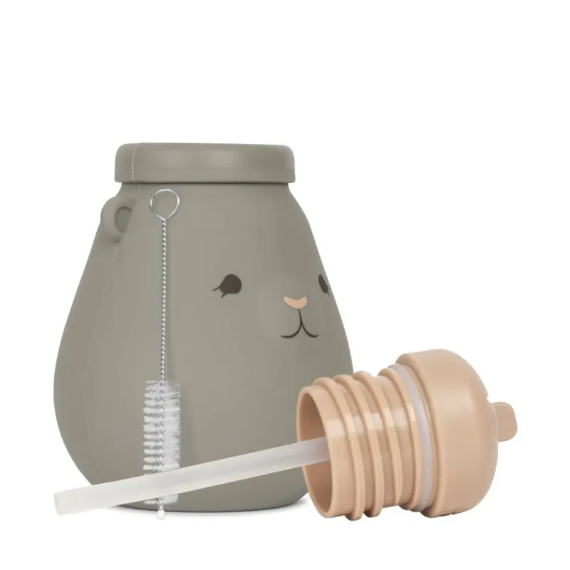 Drikkeflaske I Silikone Og Pp Med Sugerør. Der Medfølger En Flaskerenser Og Flasken Tåler Opvaskemaskine.