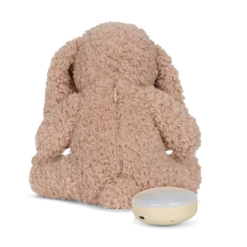 Sød Og Blød Kanin Med Led Lampe Og Bluetooth Højtaler. Bamse Har En Lynlås På Ryggen, Så Du Nemt Kan Få Adgang Til Lampen.