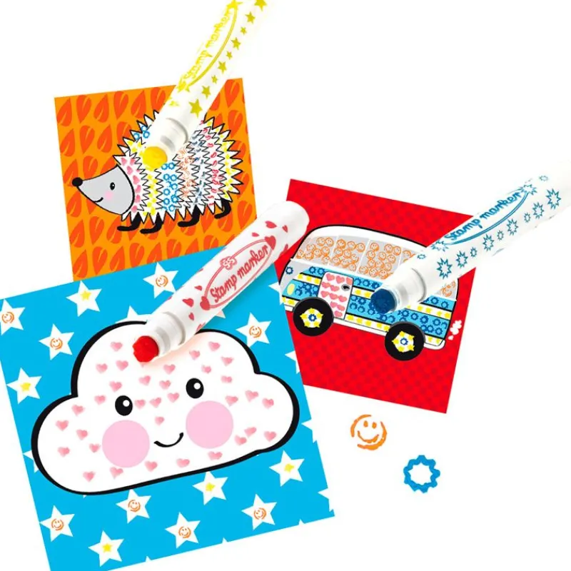 Pynt De Udskrevne Ark Med De Muntre Stempler. Her Er Ingen Stempelpude, Du Skal Bare Tage Proppen Af Tuschen Og Stemple Løs.