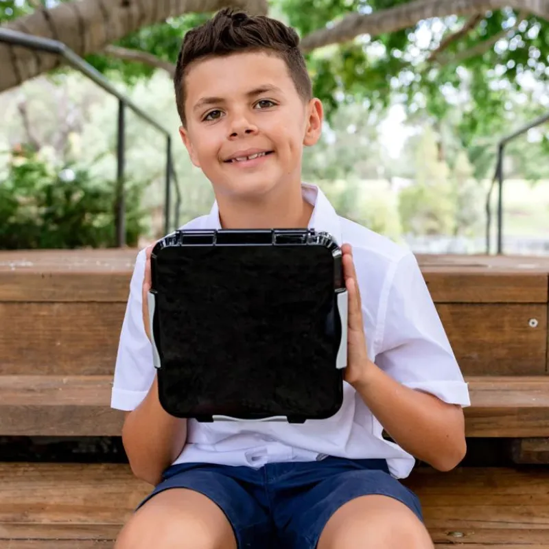 Denne Madkasse, Der Er Nem At Rengøre, Har Tre Børnevenlige Låse, Som Nemt Kan Klappes Ind Og Ud, Hvilket Gør Farverne Udskiftelige. Den Aftagelige Silikoneforsegling Gør Rengøringen Til En Leg.