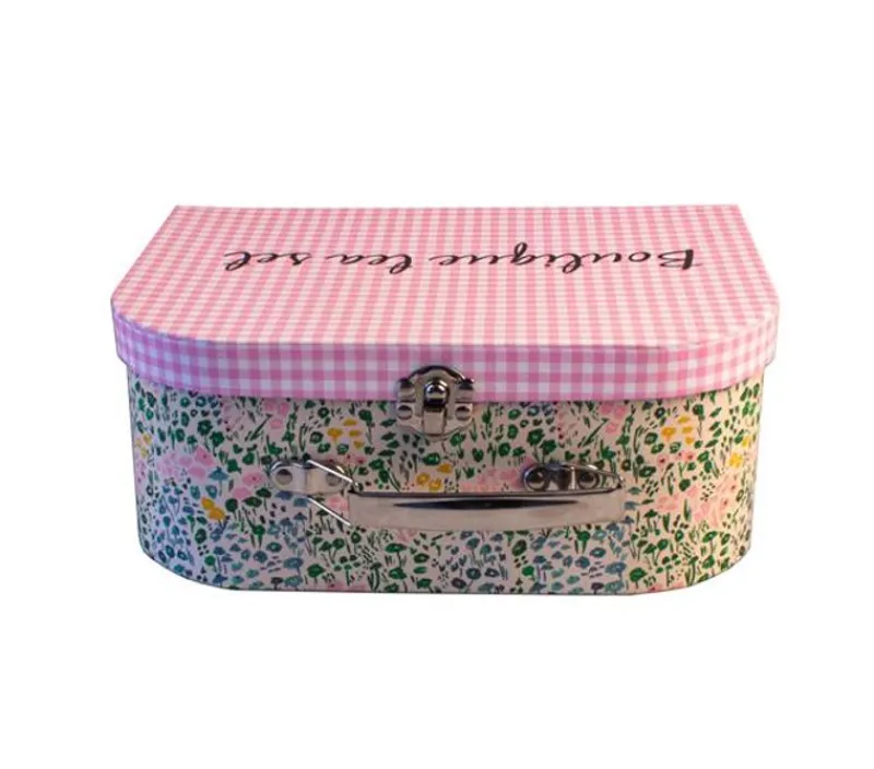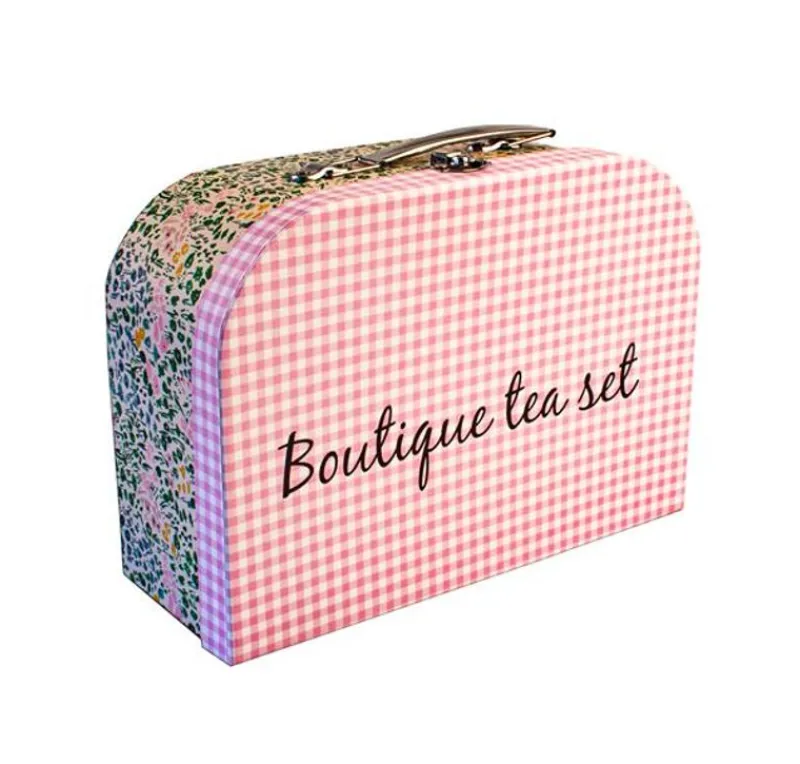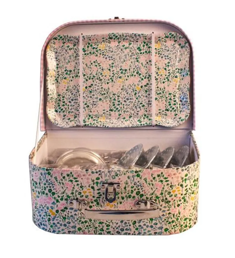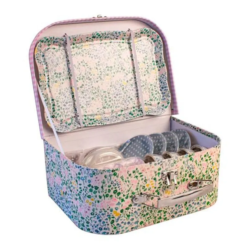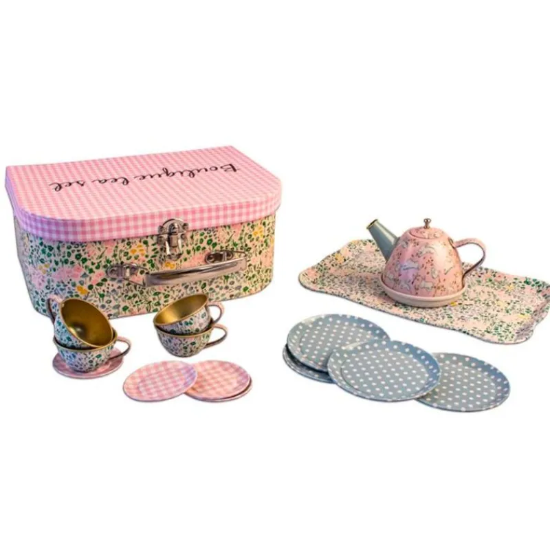 Tesæt I Tin Med Grønne Blomster Og Farver. Sættet Er Pakket I En Matchende Kuffert, Så Det Er Nemt At Tage Med I Sandkassen, Skoven Eller Bare På Farten. Sættet Består Af 1 Serveringsbakke, 1 Tekande M. Låg, 4 Kopper M. Underkopper Samt 4 Tallerkener. Et Hit Hos Alle Børn, Som Godt Kan Lide At Invitere Familie, Venner, Dukker Og Bamser Til Selskab.