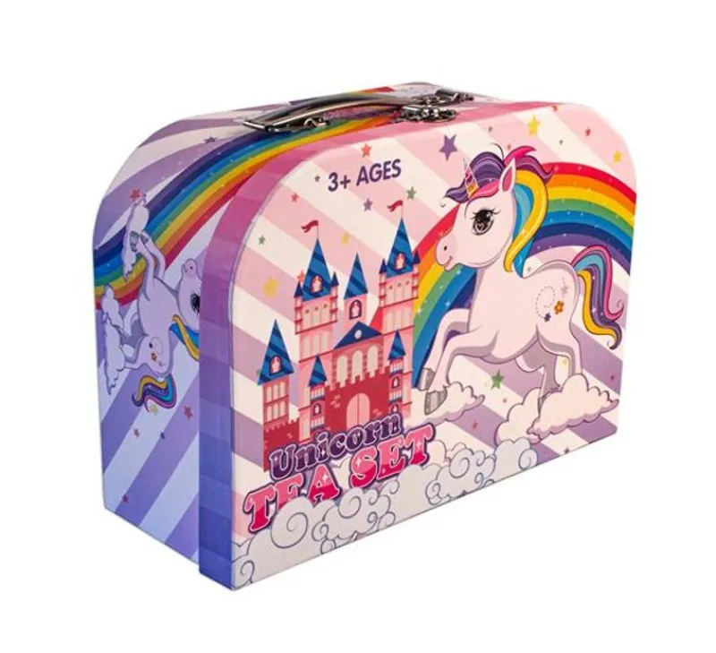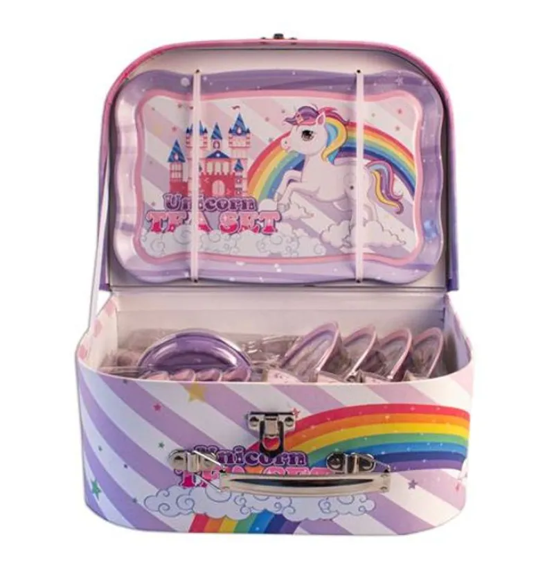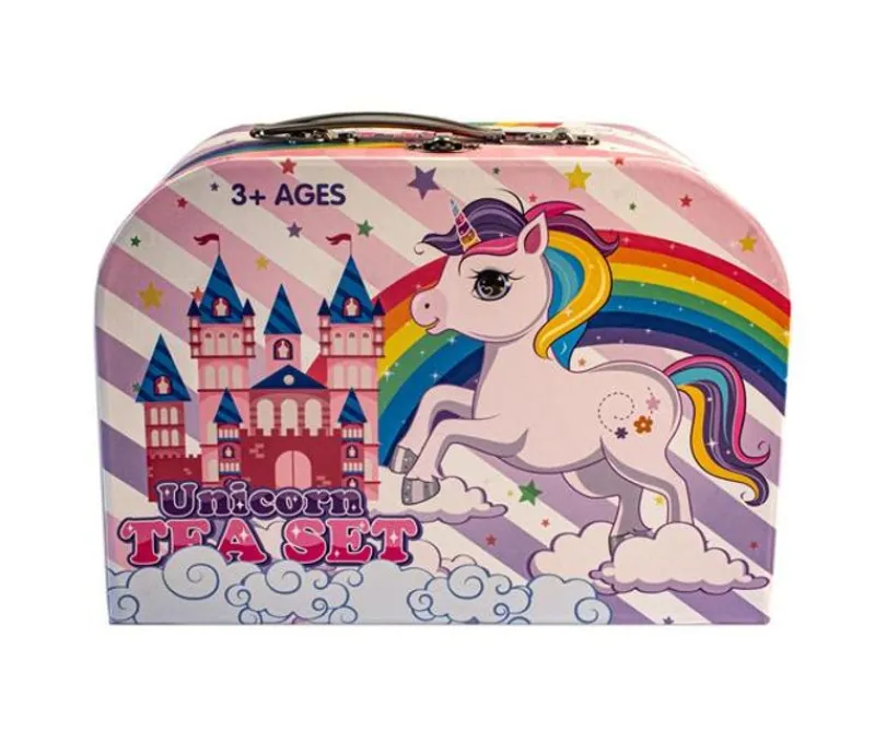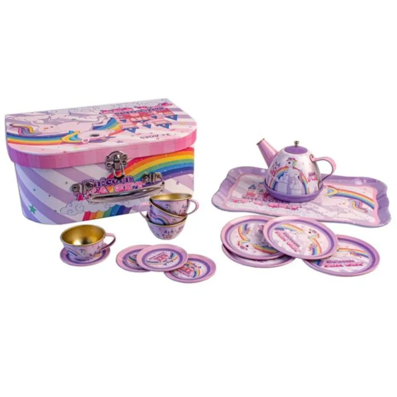 Tesæt I Tin Med Motiv Af Enhjørninger.