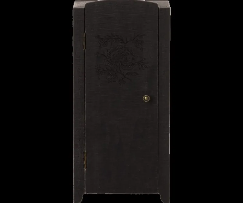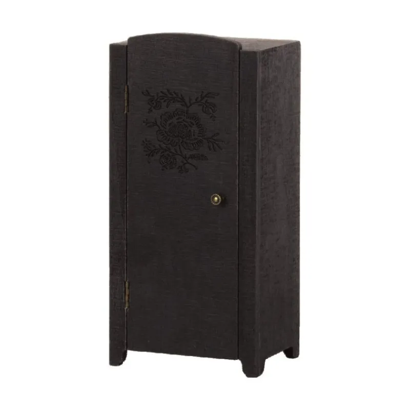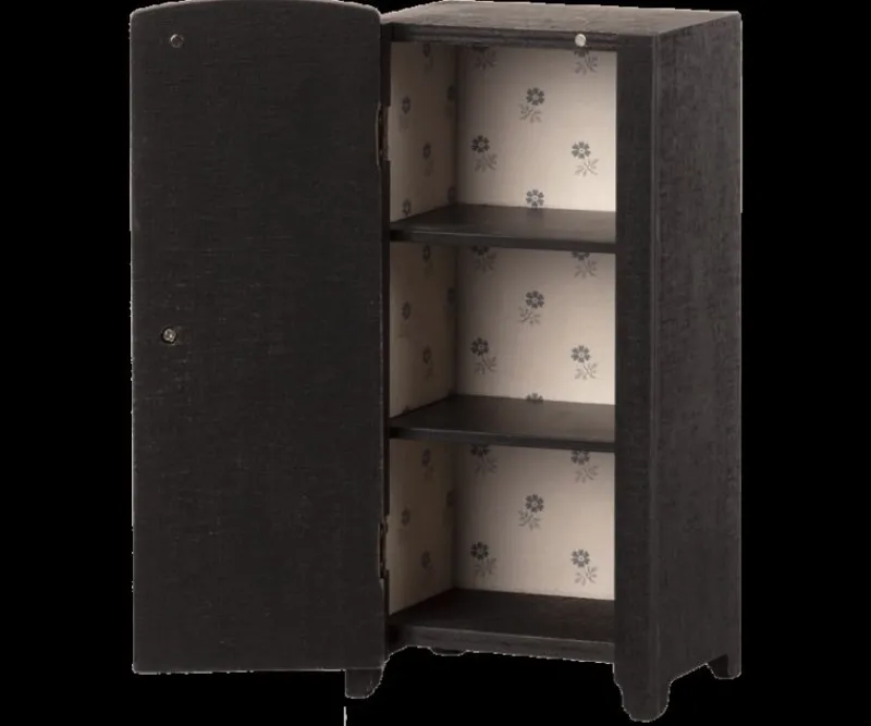 Dette Skab Med Vintage Udseende Har Et Smukt Blomstermønster På Lågen, Smukt Tapet Indeni Og Hylder. Det Passer Ind I Maileg Dukkehuset.