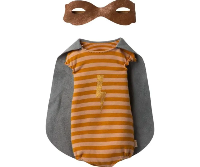 Superhelte Musen Som Pige, I Sin Skønne Orange Dragt Med Kappe Og Guld Støvler.