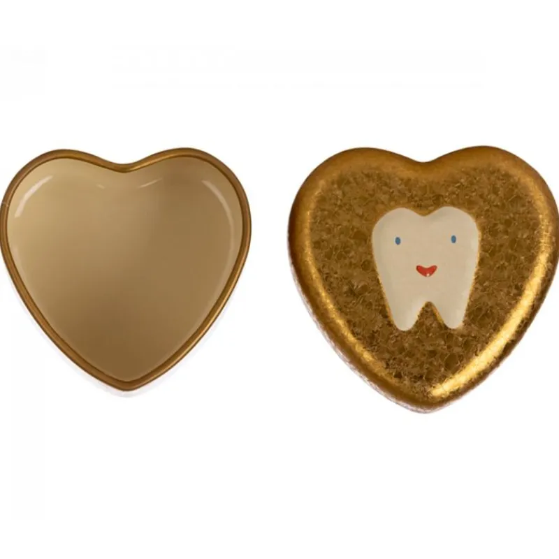 Dette Metalhjerte Er Det Perfekte Sted At Gemme Små Mælketænder For At Sikre, At Barndomsminder Bevares. Æsken Har En Flot Tandprægning På Låget Samt En Særlig Krakeleret Overflade.