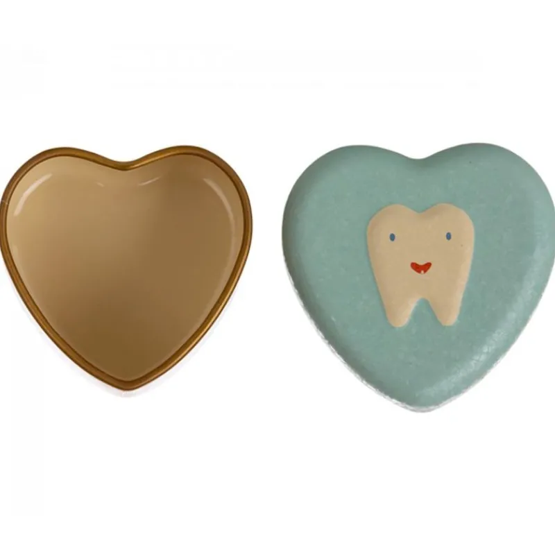 Dette Metalhjerte Er Det Perfekte Sted At Gemme Små Mælketænder For At Sikre, At Barndomsminder Bevares. Æsken Har En Flot Tandprægning På Låget Samt En Særlig Krakeleret Overflade.