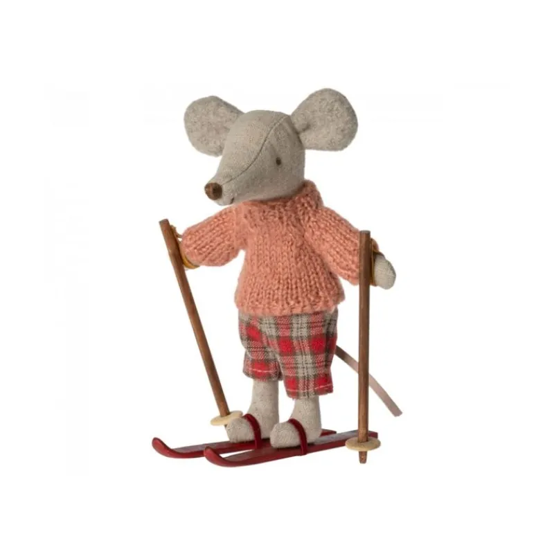 En Mus Klar Til Timevis Af Sjov På Pisterne I Den Kolde Vintertid. Sættet Indeholder En Mus Klædt I En Varm Striktrøje, Bukser Og Et Par Ski Og Stave. En Sjov Detalje Er Ørerne, Som Er Lavet Så Det Ligner At Musen Har Ørevarmere På.