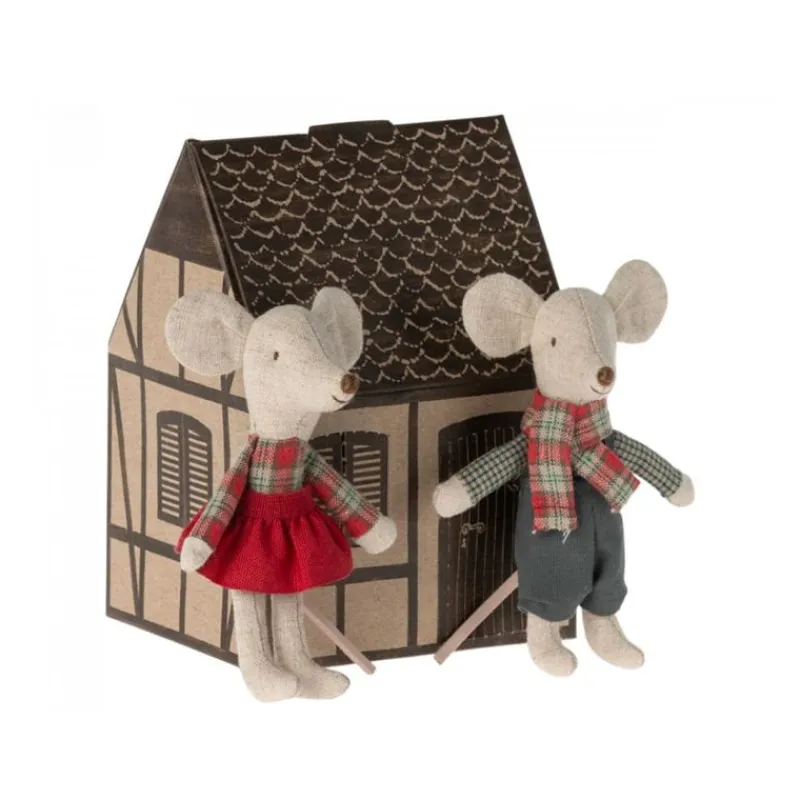 Disse Tvillingemus Er Klar Til En Masse Sjov I Den Kolde Vintertid. De Kommer I Et Lille Hyggeligt Papirhus, Som Kan Indgå Som En Del Af Legen. Når De Skal Ud På Pisterne Med De Ældre Mus, Passer Træslæden Perfekt Til Disse Tvillinger.