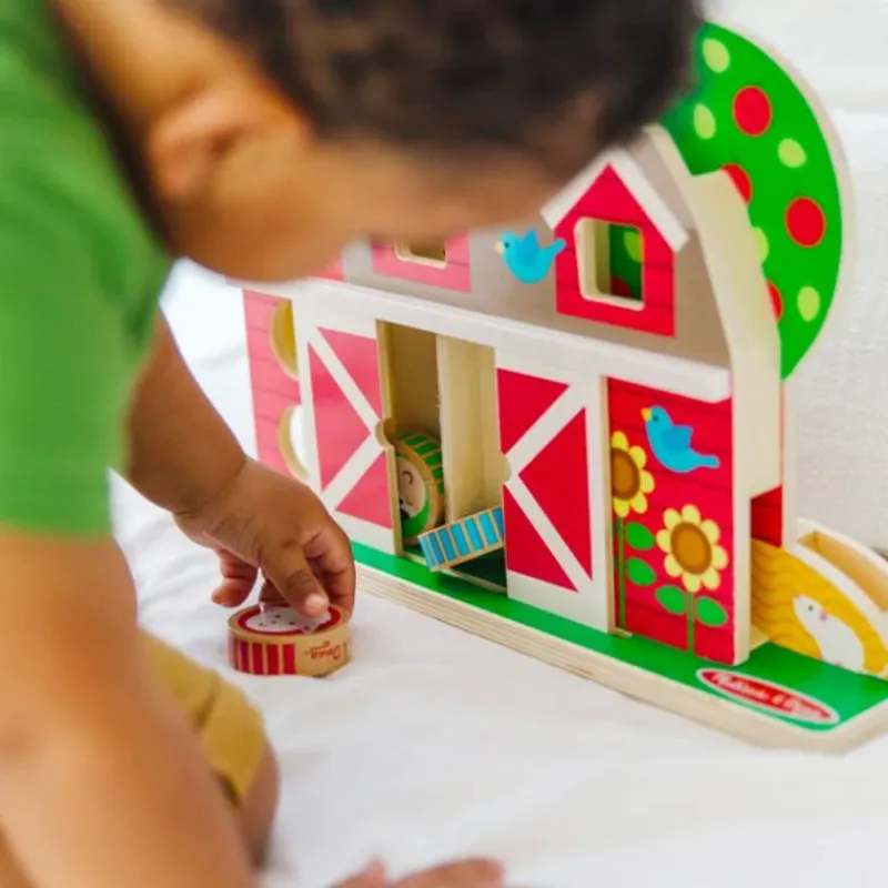 På Bondengården Kan Du Både Rulle, Stable Og Skjule De Små Bondegårdsdyr. Bondegården Har Et Lille Håndtag, Så Man Altid Kan Have Den Med Rundt Omkring. Der Medfølger 6 Dyr Og 2 Landmænd.