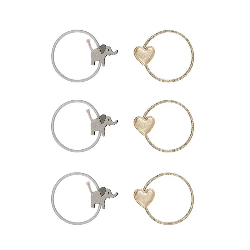 2 X 3 Hårelastikker Med Søde Elefanter Og Guldhjerter.