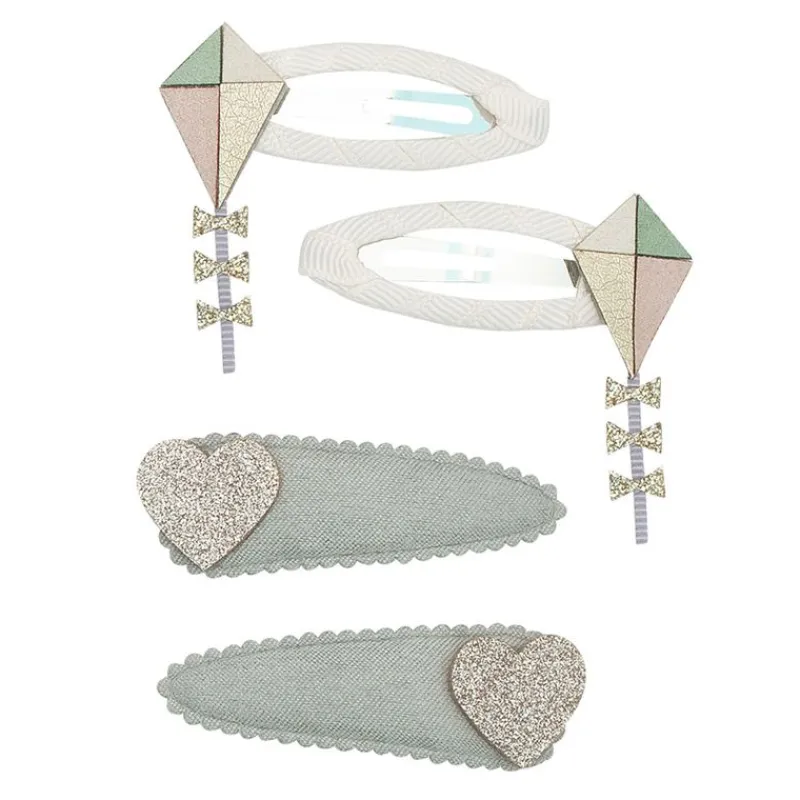 2 Par Hårspænder; 1 Par Med Drager Og Satinbånd, 1 Par Med Hjerter Og Glimmer.