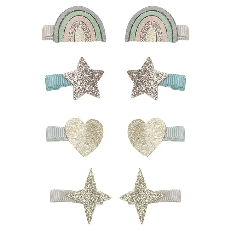 4 Par Mini Hårclips Med Satinbånd; 1 Par Regnbuer, 1 Par Hjerter Og 2 Par Stjerner.